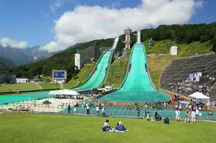 長野オリンピックで日本ジャンプチームが金メダルに輝いた、白馬ジャンプ競技場。ノーマルヒル・ラージヒルの間にあるリフトに乗車すると地上約140mの高さにあるスタート地点まで登り、選手の目線を感じる事ができます。